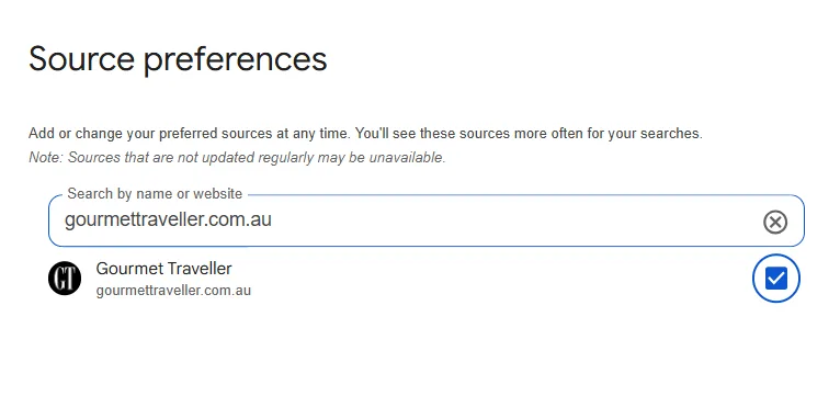 How to add Gourmet Traveller as a preferred source