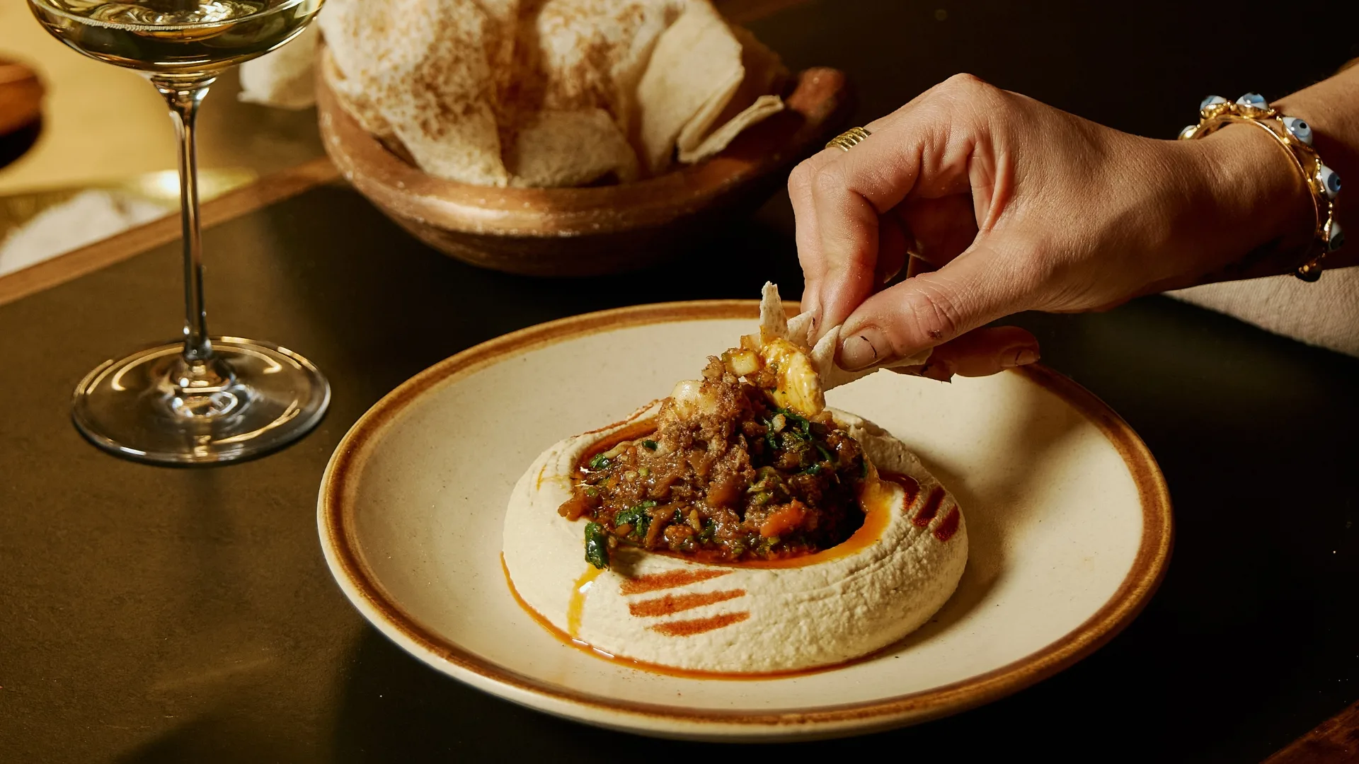 The same meticulous standard continues with kafta nayyeh, a chunky-cut raw lamb dish deftly spiced, topped with fresh herbs and radish slices and served with crisp-fried pita. Then there’s the deservedly cult-like Bar Saracen-era dish of hummus topped with a toum and chilli-centred sauce of prawns and crab, or charcoal-grilled chicken kebabs, marinated in onion juice and accompanied by superb pickled green chillis or muhullabeya, a Greg Malouf-inspired milk pudding dessert, pretty with rhubarb, strawberries and pistachios. All hits, no misses.