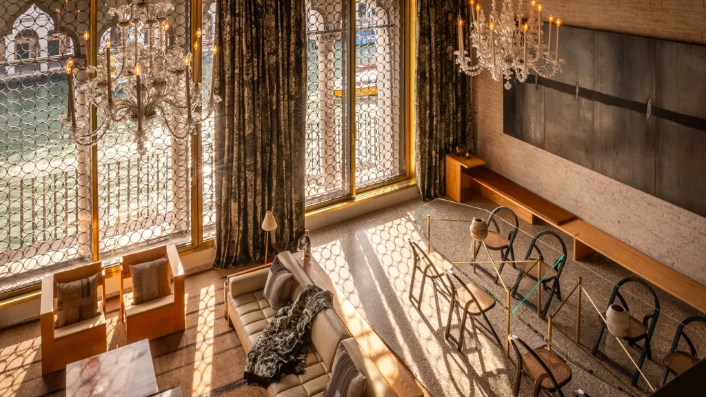 It’s a remarkable way to start a day here, framed beautifully by The Venice Venice. Opened in 2022, the project sprang from the creative vision of founders Alessandro and Francesca Gallo – husband-and-wife creators of the Golden Goose sneaker brand – who tackled the tightrope-walk of sensitively restoring one of the oldest palazzos on the Grand Canal, dilapidated and deserted for decades, from the water-soaked foundations up.