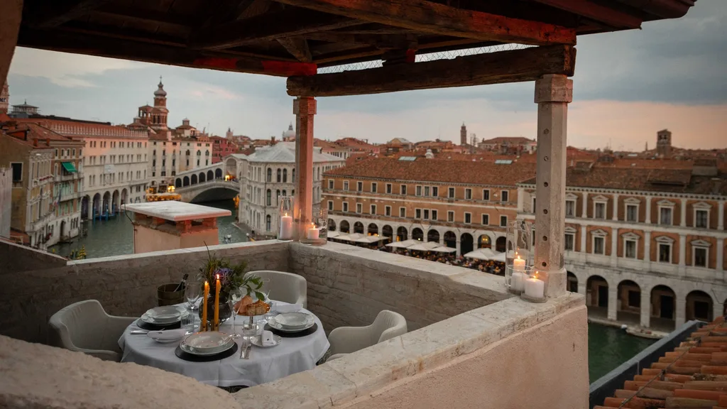 It’s hardly surprising then, that I awake in my suite at The Venice Venice Hotel in a bit of a fog. Opening the curtains, I’m treated to a slow unveiling of the Grand Canal’s morning rituals. To my left lies the Rialto Bridge; to my right, a procession of gondolas and vaporettos approaches through the haze as though emerging from a dream. Some vessels, laden with produce, stop at the Rialto market opposite, so close I can see a lady walking her dog, which promptly lifts a hind leg against a market table. Everyday life in La Serenissima: minutiae amid the majesty.